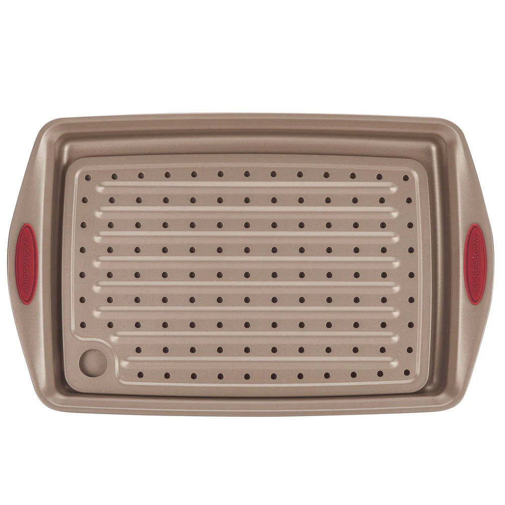 Prepare foods with oven-crisped goodness when baking or roasting with this heavy gauge steel crisping sheet set. Durable cookie sheets are finished with long-lasting, nonstick inside and out for outstanding food release with quick cleanup. Oven safe to 450°F.