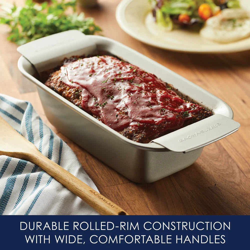 This nonstick bakeware set can handle cakes, zesty lasagna, meatloaf, cookies, brownies, banana bread, and more. Made from heavy gauge steel, the bake pans resist warping and feature long-lasting nonstick that provides excellent food and baked good release with easy cleanup. Oven safe to 450°F.