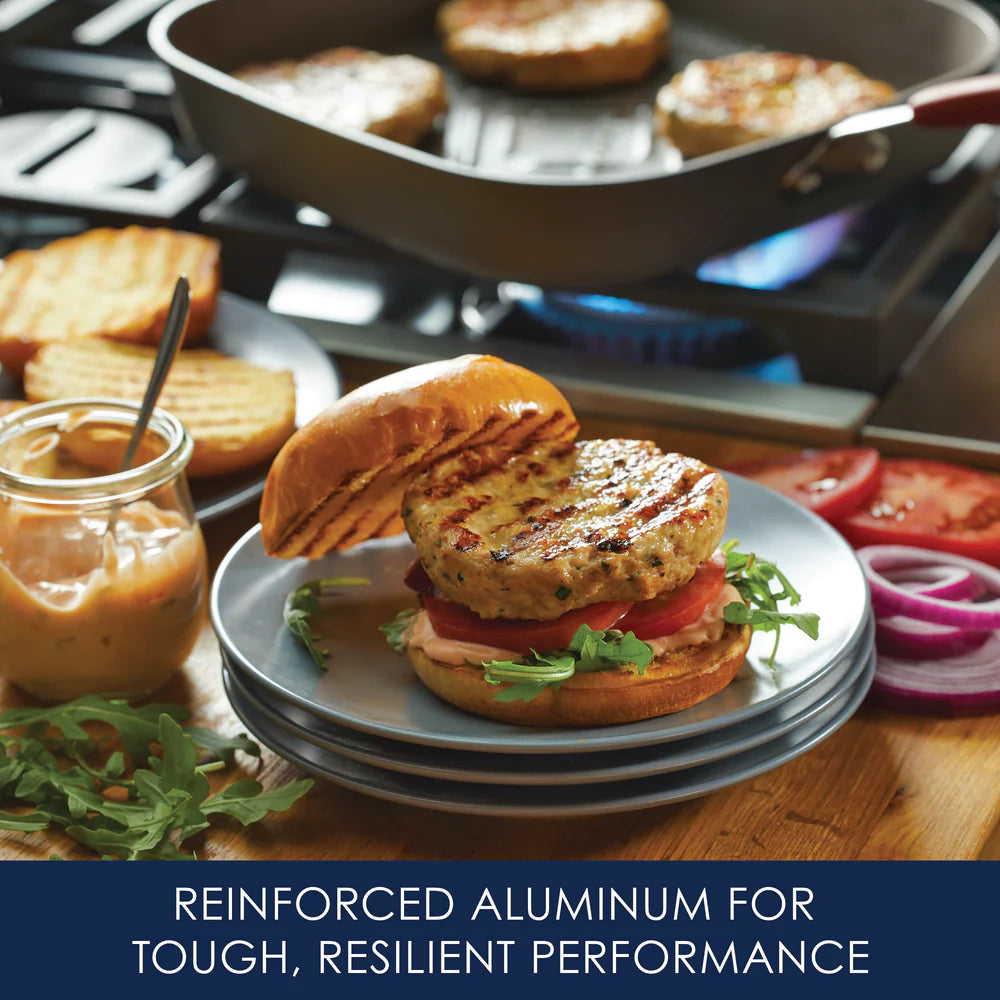 Grill flavorful steaks, chicken, and chops at any time of the year with a nonstick grill pan. The deep sides are perfect for indoor grilling while the raised ridges help to achieve those desired sear marks. Long-lasting nonstick for effortless food release and easy cleanup. Oven safe to 400°F.