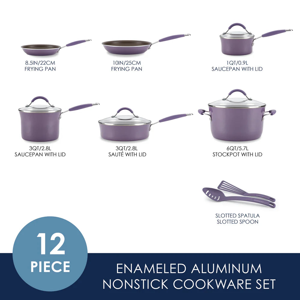 SET INCLUDES: 1-quart and 3-quart saucepans with lids, 6-quart stockpot with lid, 8.5-inch and 10-inch frying pans, 3-quart sauté pan with lid, slotted turner and spoon