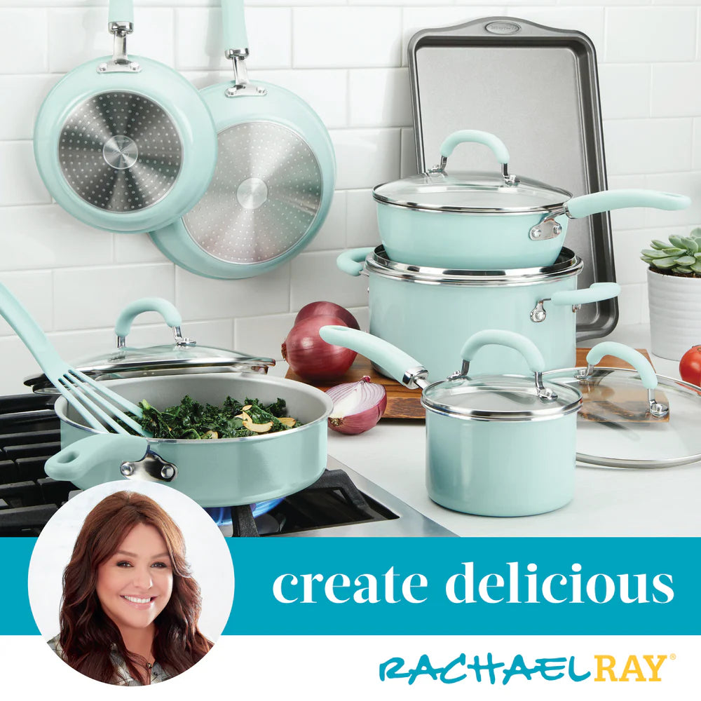 13-Piece Create Delicious Nonstick Induction Cookware Set Light Blue Shimmer
