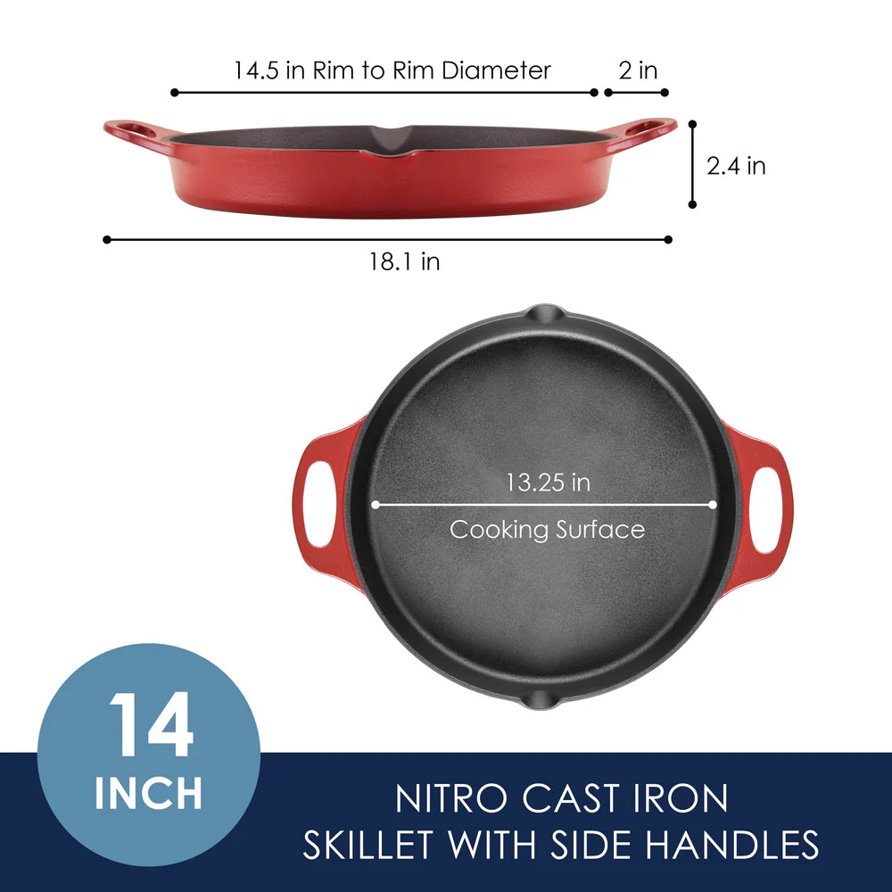 14-Inch NITRO Cast Iron Skillet Red