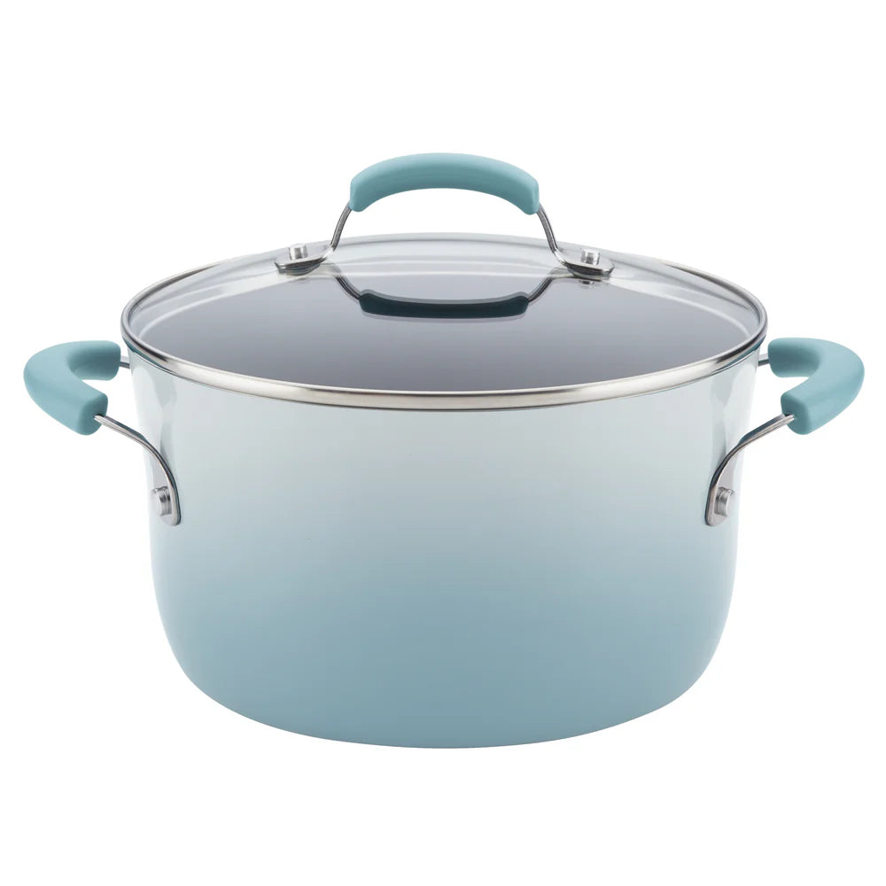 From saucepans to skillets to a large stockpot for one of Rachael Ray’s delish stoups, plus convenient kitchen tools and a handy baking sheet, this versatile cookware set makes it easy to whip up your favorite dishes. The cookware and bakeware features the quality design and construction expected from Rachael Ray for fast, efficient cooking when you need it most. Long-lasting nonstick makes food release and cleanup easy, and the sturdy colorful porcelain enamel cookware provides a pop of kitchen personality. Cookware is oven safe to 350°F, sheet pan is oven safe to 450°F, and the versatile set includes all the right kitchenware ingredients to help make your ingredients and Rach’s recipes even more delish.