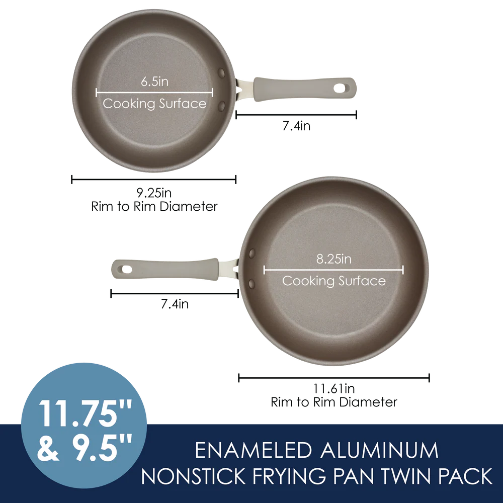 These practical 9.5-inch and 11.75-inch frying pans are crafted from thicker gauge aluminum for a luxe, sturdy feel and reliable stovetop performance that heat up quickly and evenly. Fry pans are finished with high-quality nonstick for effortless food release and easy cleanup.