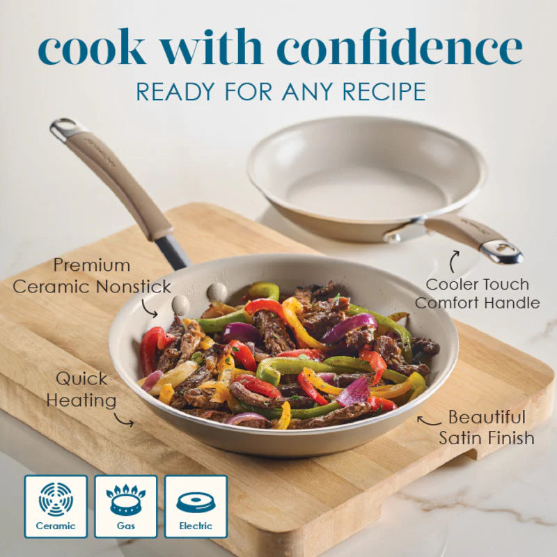 2-Piece Cucina Ceramic Nonstick Skillet Set Hazelnut