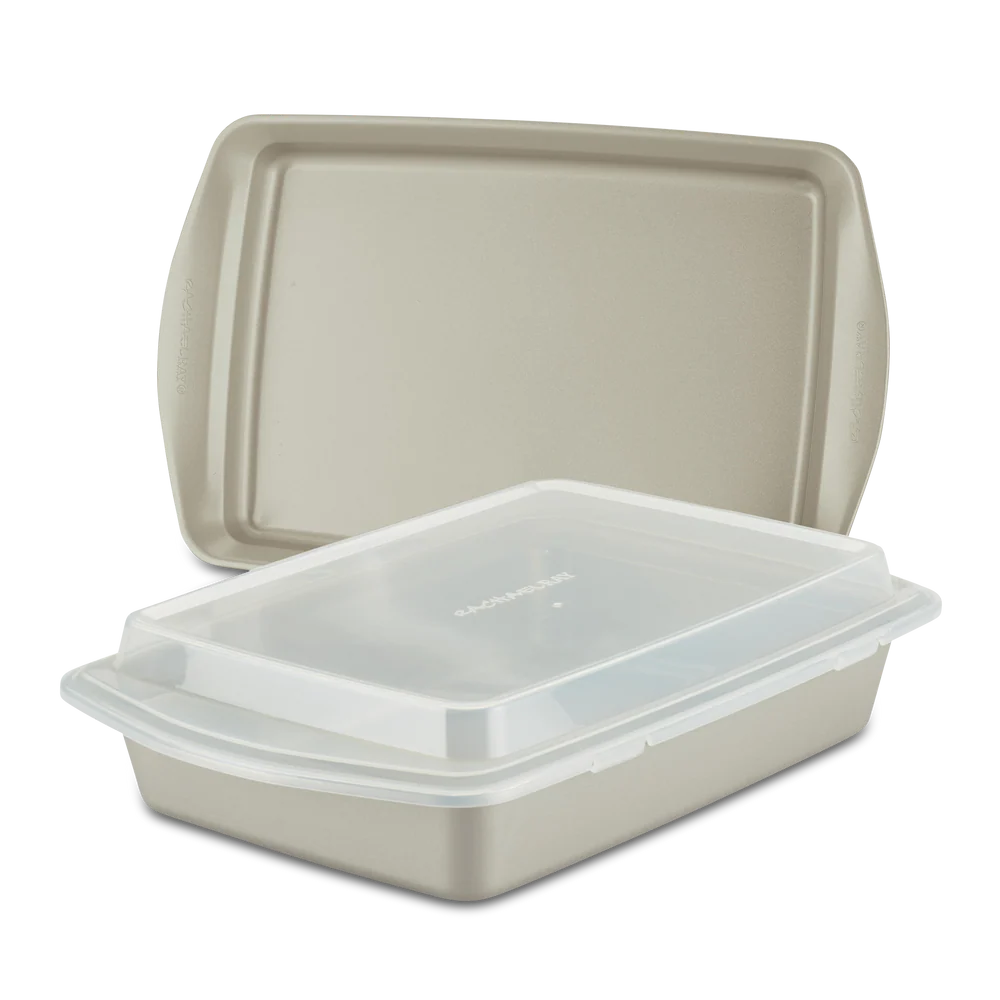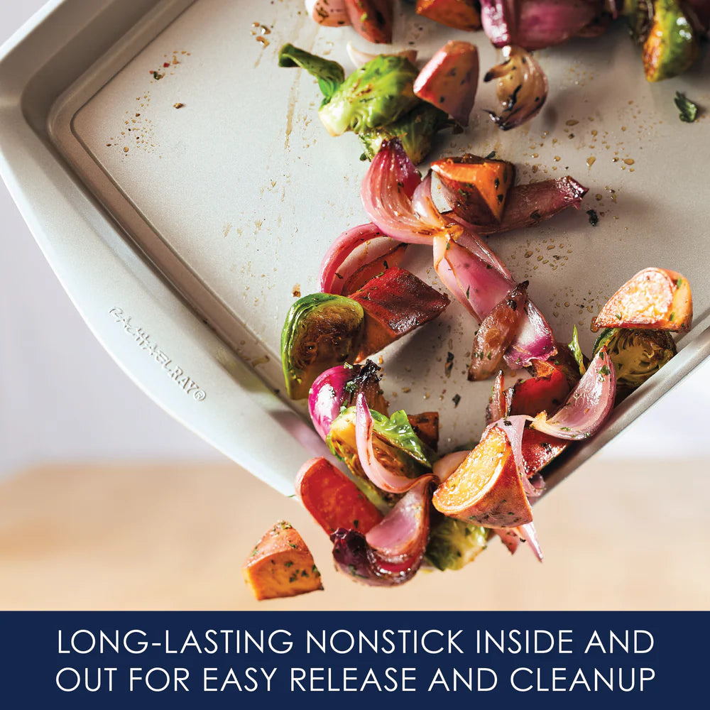 Get three incredibly versatile pans for baking, crisping and roasting. Made from heavy gauge steel, these nonstick cookie pans resist warping and feature long-lasting nonstick that provides excellent food release. Oven safe to 450°F.
