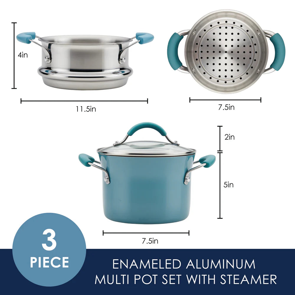 Give veggies, tamales, and more the steam treatment with this versatile multi-pot steamer set. Made from durable aluminum, this quick- and even-heating cookware is finished with long-lasting nonstick for effortless food release and fast cleanup. Oven safe to 400°F.
