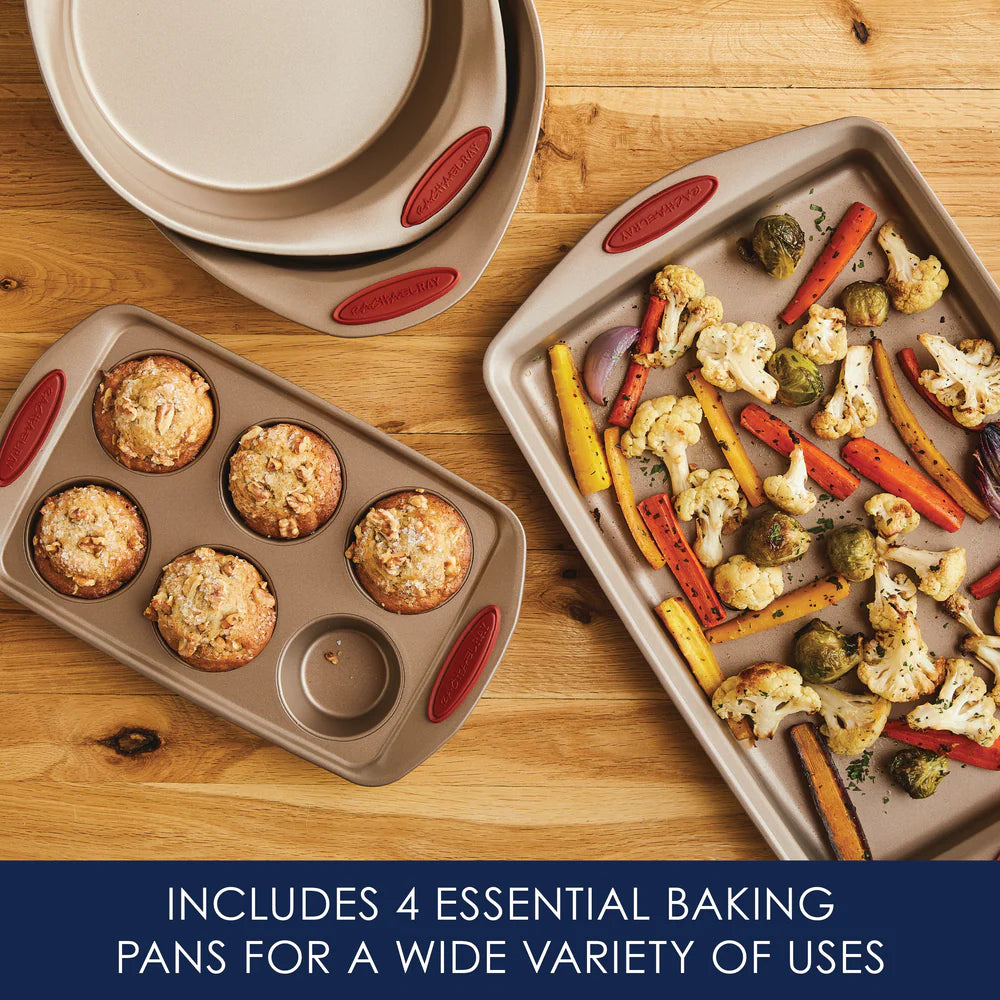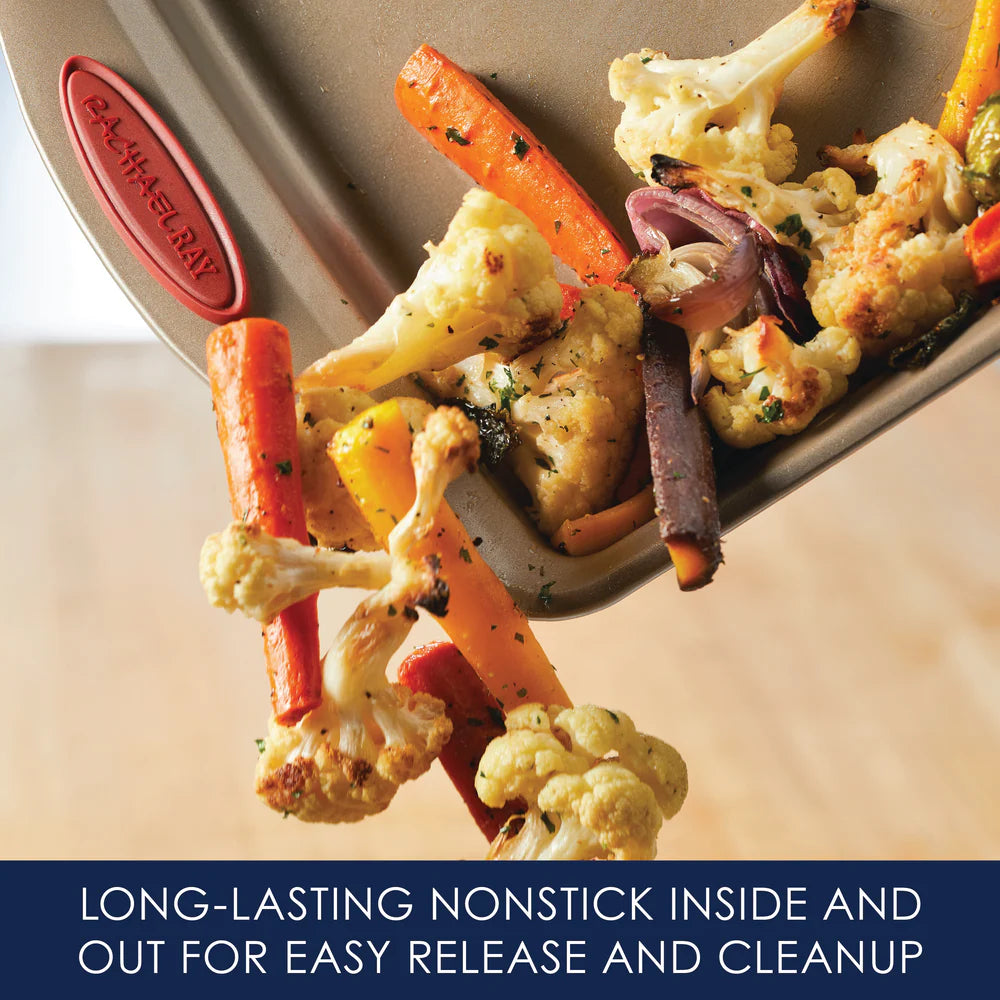 Roasting and baking veggies or cookies is a snap with this durable, heavy gauge steel bakeware set. Long-lasting nonstick inside and out provides outstanding food release with quick cleanup. Oven safe to 450°F.