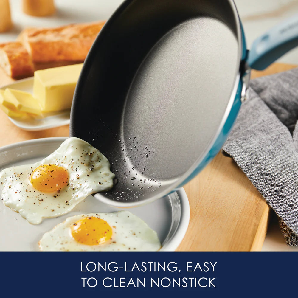 10 Piece Set Includes: 1-Quart Covered Saucepan, 2-Quart Covered Saucepan, 6-Quart Covered Stockpot, 3-Quart Covered Sauté Pan, 8.5-Inch Skillet, 10-Inch Skillet