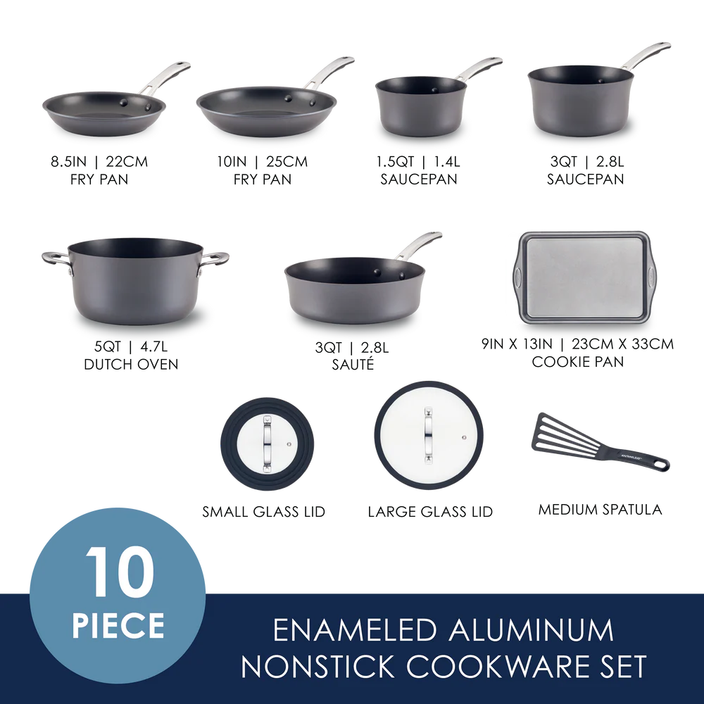 Cook + Create Hard Anodized Nonstick Cookware Sets 10-Piece Black