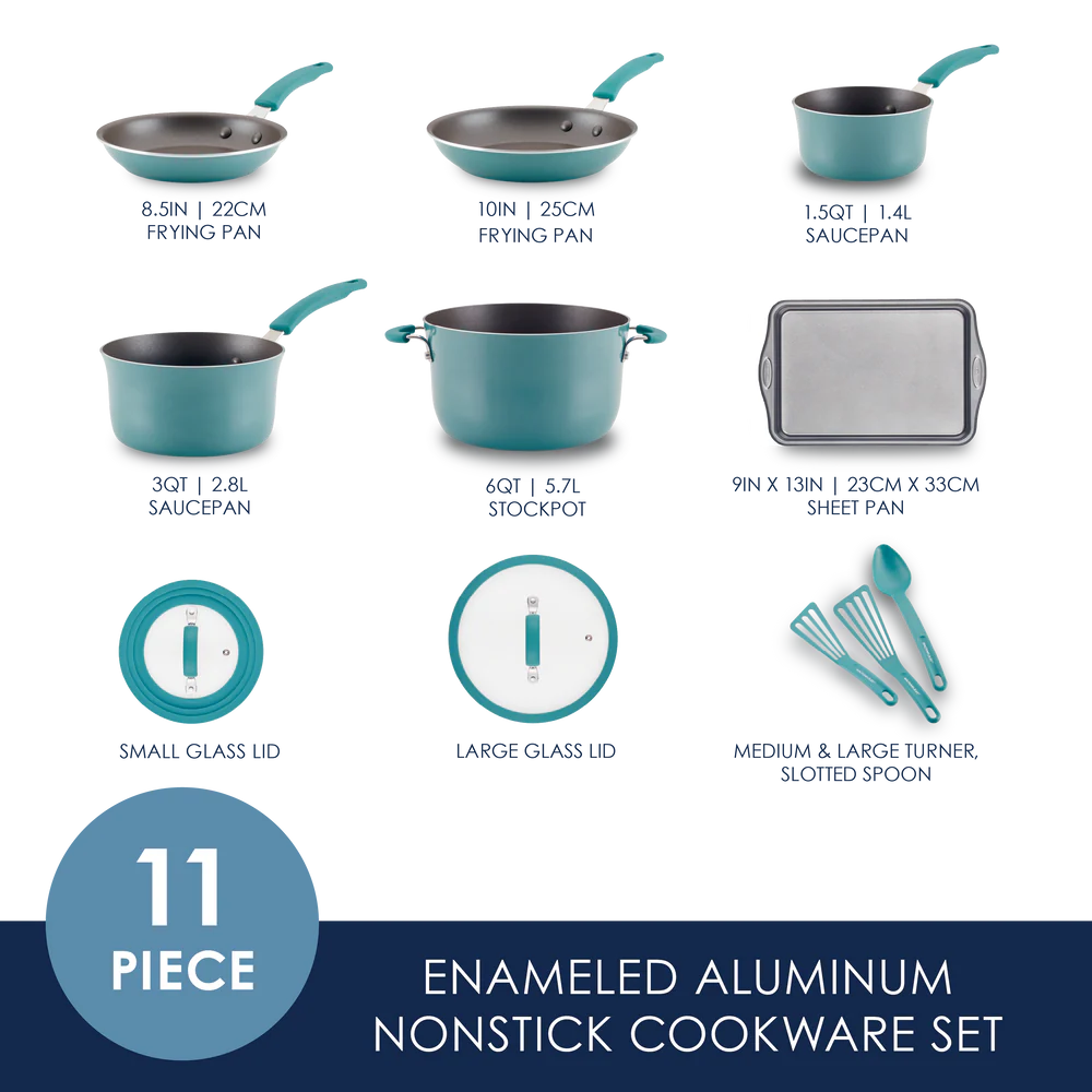 Cook + Create Nonstick Cookware Sets 11-Piece Agave Blue